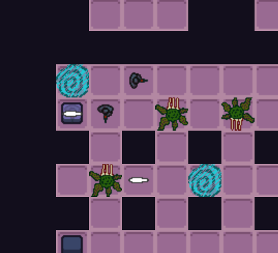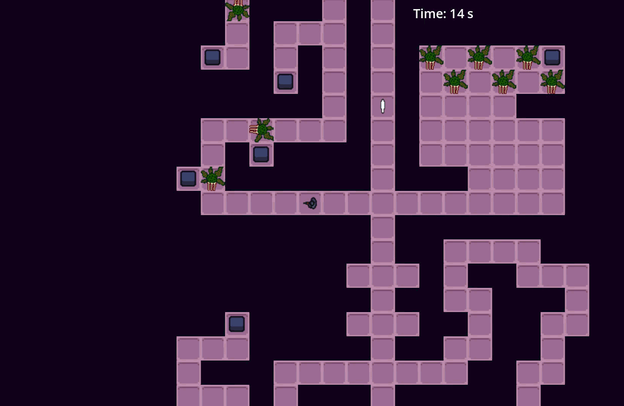 The player has to press all the buttons, dodge the enemies and be careful not to bump into themselves. The mechanics are partially inspired by the Deadly Rooms of Death.